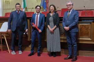Durante la PhD Welcome and Innovation Award, la cerimonia che inaugura il 41° ciclo di Dottorato dell’Università degli Studi di Trieste, sono stati premiati dal Vicepresidente del Consiglio di Amministrazione della Fondazione CRTrieste, prof. Francesco Peroni, e dalla Rettrice, prof.ssa Donata Vianelli, i cinque Dottori di Ricerca che hanno prodotto la migliore tesi nel 2025.