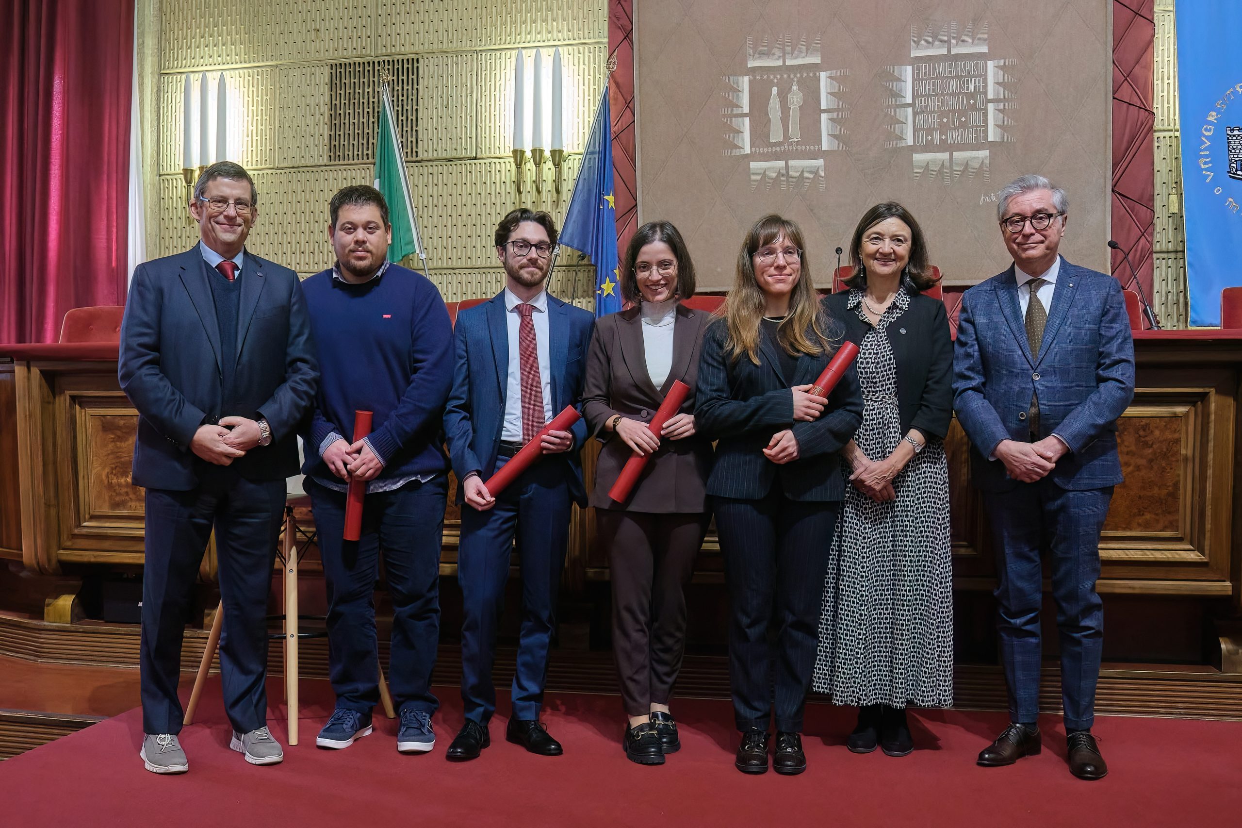 Durante la PhD Welcome and Innovation Award, la cerimonia che inaugura il 41° ciclo di Dottorato dell’Università degli Studi di Trieste, sono stati premiati dal Vicepresidente del Consiglio di Amministrazione della Fondazione CRTrieste, prof. Francesco Peroni, e dalla Rettrice, prof.ssa Donata Vianelli, i cinque Dottori di Ricerca che hanno prodotto la migliore tesi nel 2025.