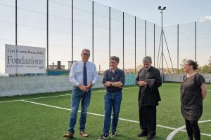 È stato inaugurato il nuovo campo da calcetto dell’Oratorio dei Salesiani di San Giovanni Bosco. Alla cerimonia erano presenti il parroco, don Salvatore di Martino; don Marco Brollo responsabile dell’Oratorio; Enrico Eva, componente del Consiglio di Amministrazione della Fondazione CRTrieste, che ha sostenuto integralmente i costi dei lavori i lavori, e Francesca Parisi, rappresentante della Comunità di San Martino al Campo.