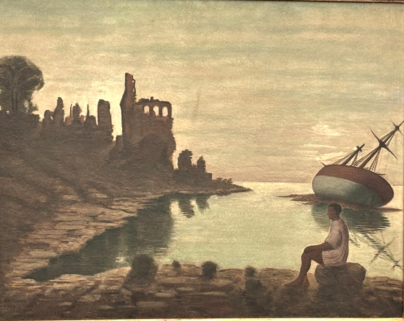 Nave arenata presso una costa con rovina